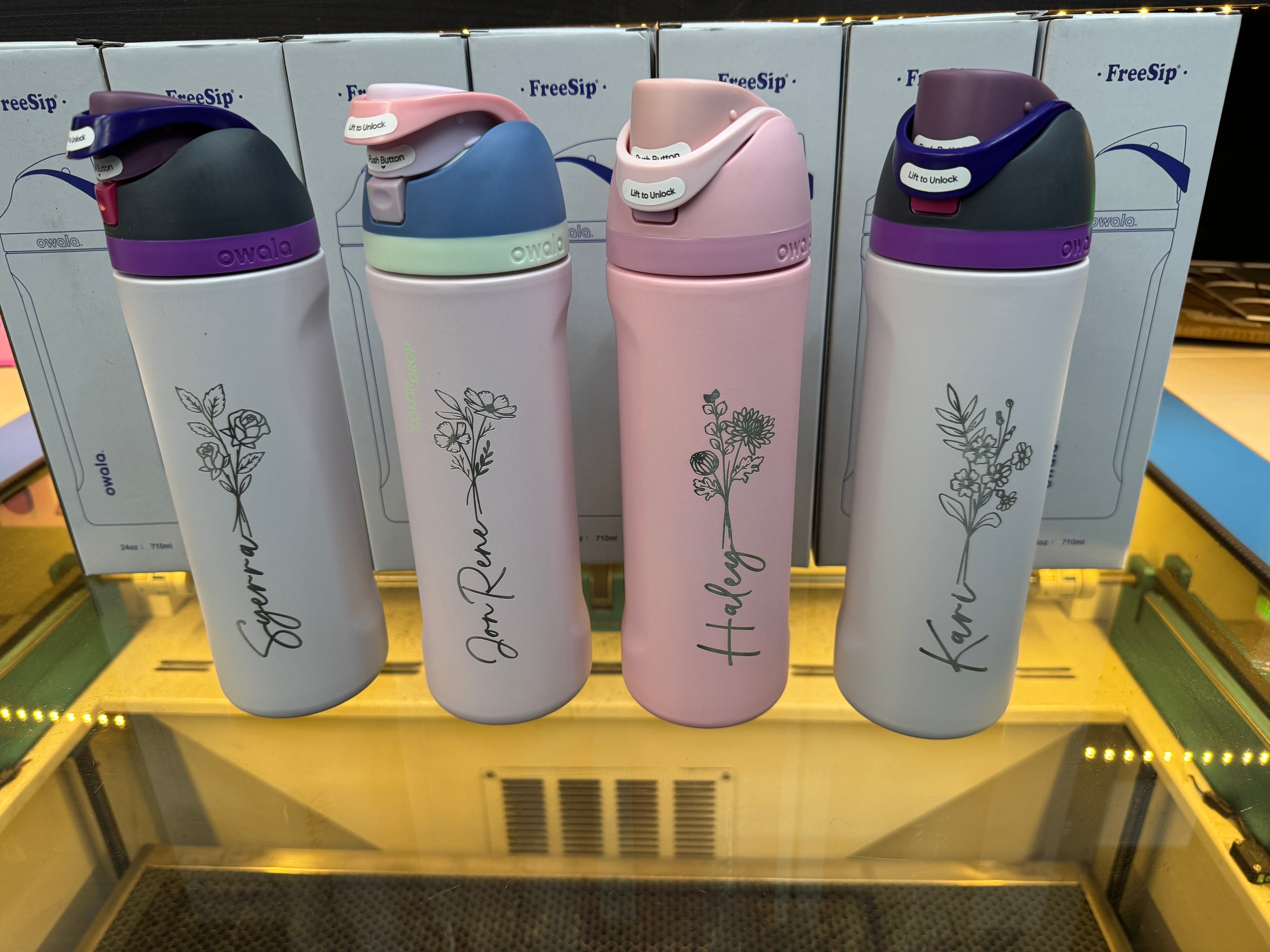 At FireBolt Custom, we laser‑engrave Owala and Frost Buddy tumblers with precision—whether you need a single personalized gift or a full run of corporate orders.